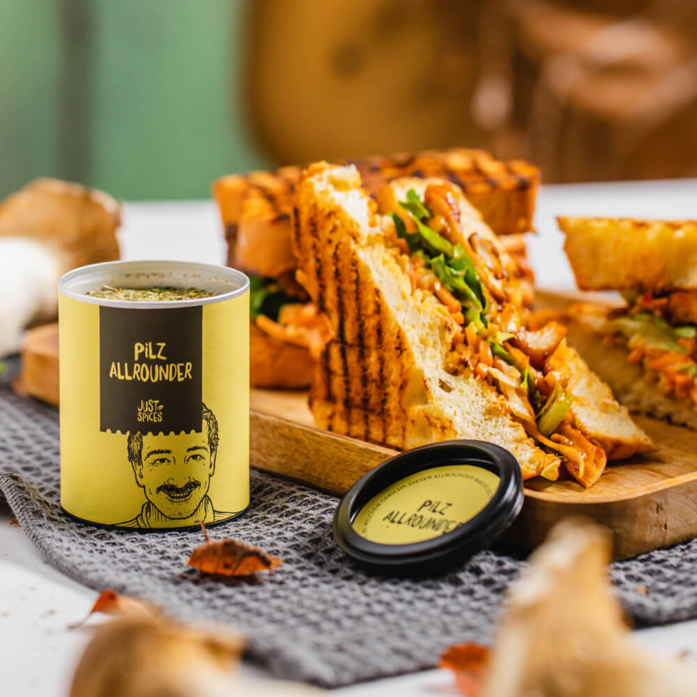 Zutaten: Meersalz, geräuchertes Salz (Speisesalz, Rauch), Rohrohrzucker, Tomate, Paprika, Knoblauch, Chili, Rosmarin, Thymian, Salbei, Koriander, Kurkuma, Bockshornkleesaat, Fenchel, Kreuzkümmel, schwarzer Pfeffer, Nelke.