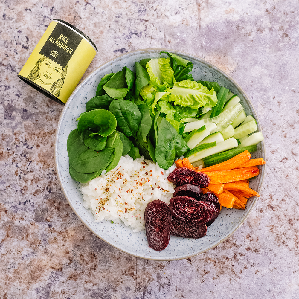 Zutaten: Meersalz, geräuchertes Salz (Speisesalz, Rauch), Rohrohrzucker, Tomate, Paprika, Knoblauch, Chili, Rosmarin, Thymian, Salbei, Koriander, Kurkuma, Bockshornkleesaat, Fenchel, Kreuzkümmel, schwarzer Pfeffer, Nelke.